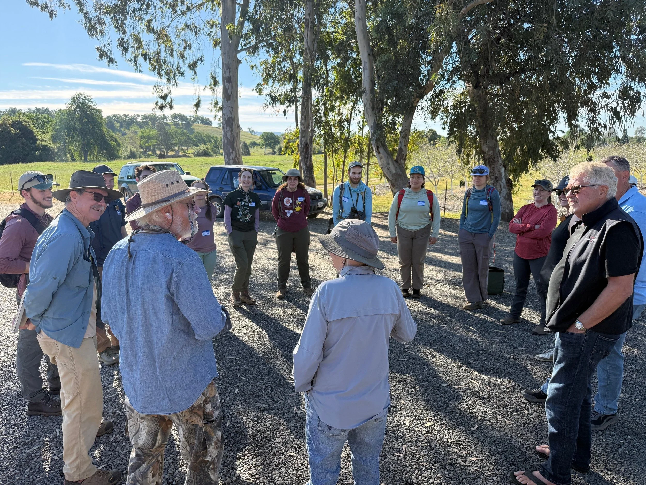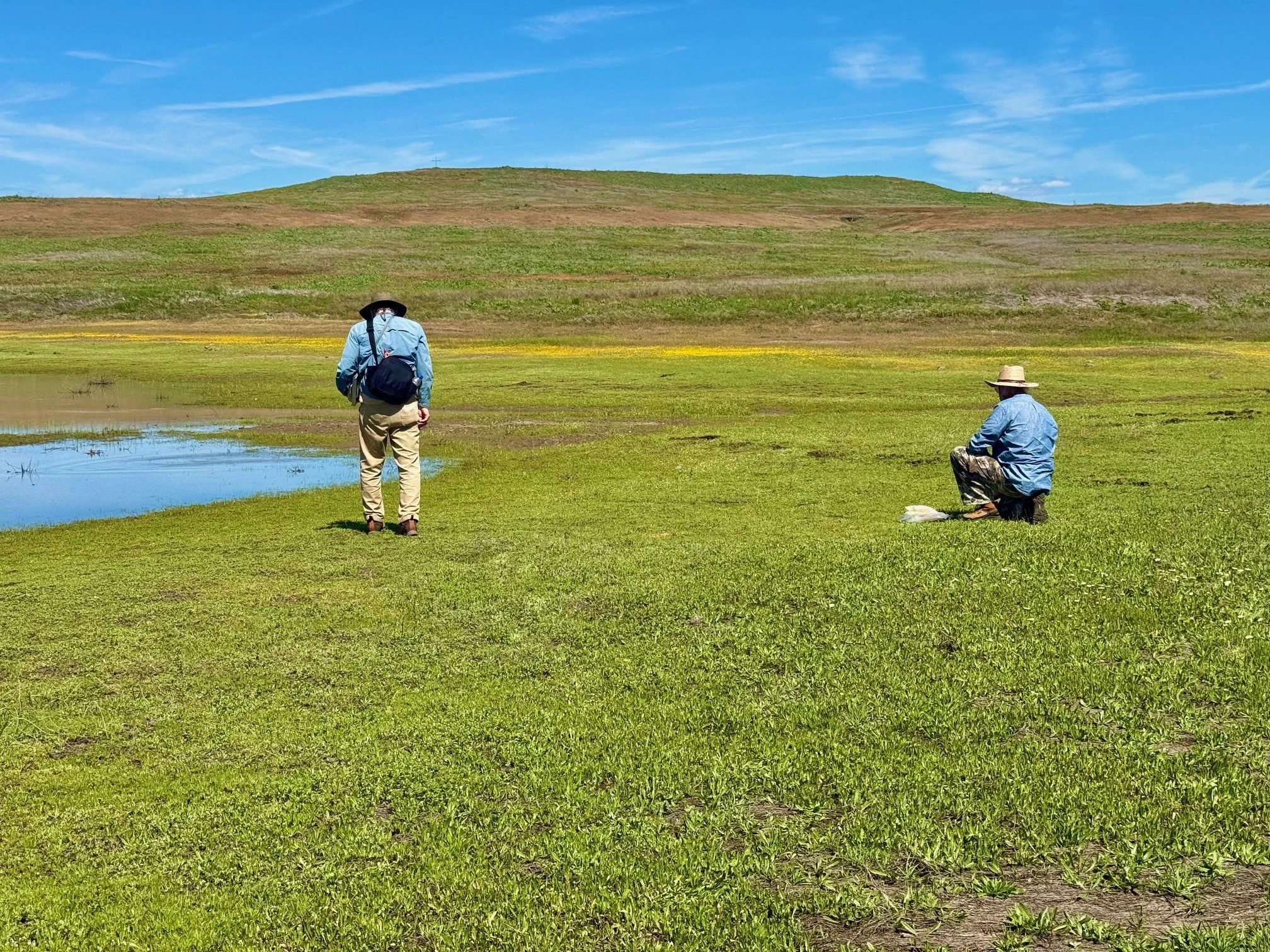 The property was beautiful, sweeping fields transitioning to proud buttes. Flowing water and groves of oak with small sprouts of regeneration. We trekked to seeps covered in monkey flowers and walked across hills abundant in purple hyacinth. Crouching to look at the little things, curious and confident in turns.